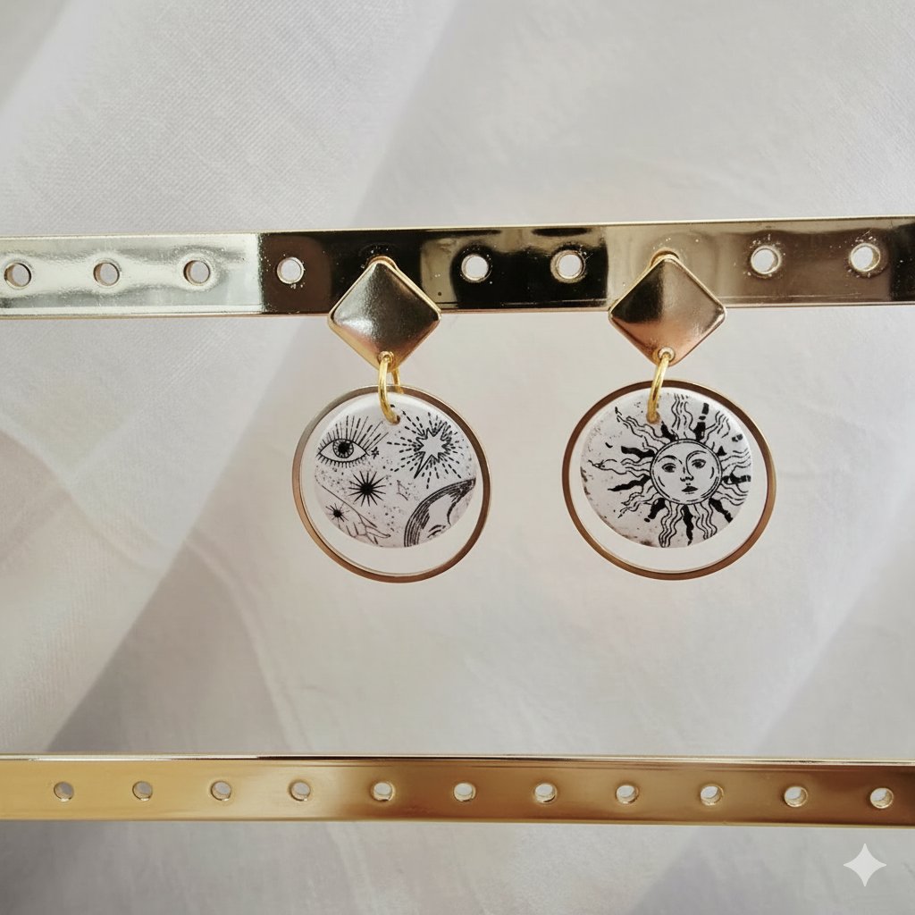 Boucles d’oreilles Céleste – Médaillons Graphiques & Esprit Astro