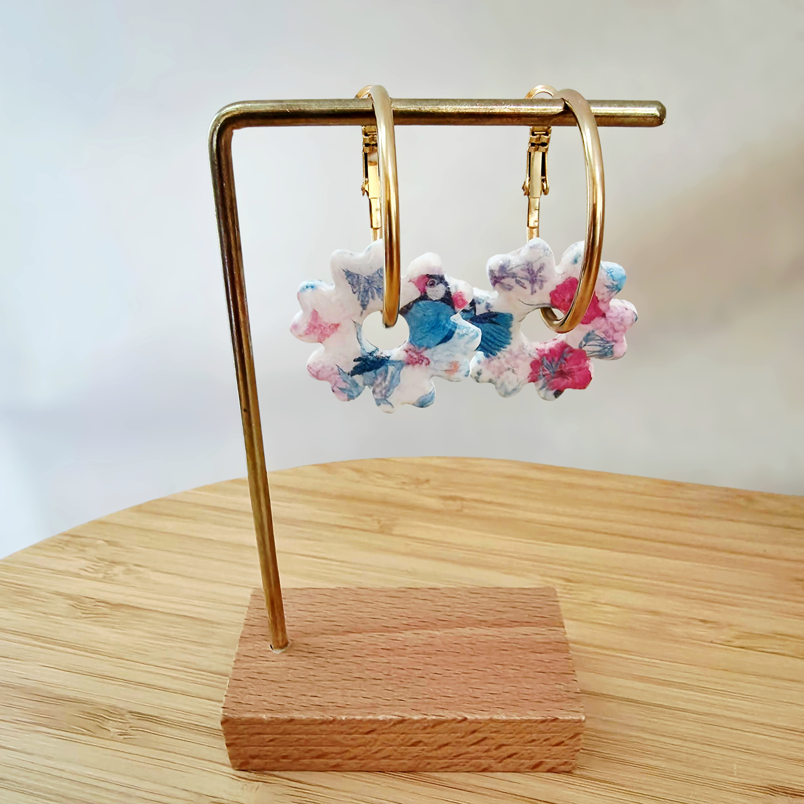 Montées sur des créoles en acier inoxydable doré, elles sont parfaites pour celles qui cherchent à ajouter une touche de nature et de couleur à leur look quotidien.