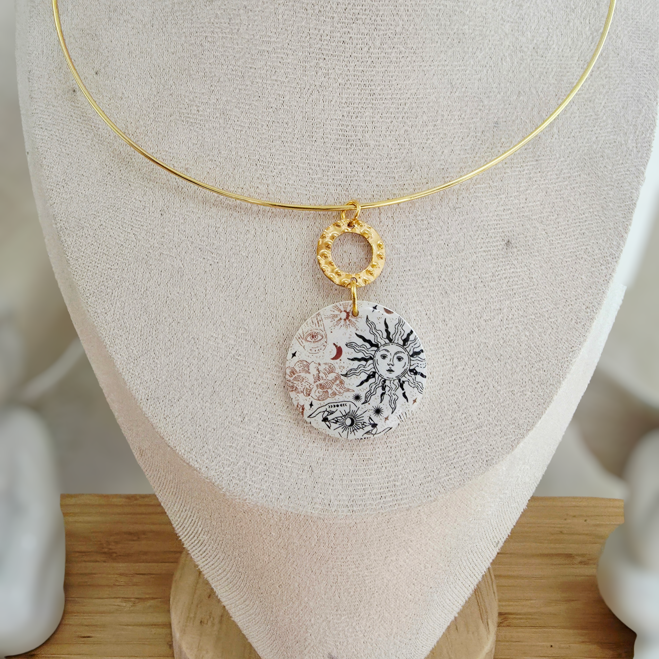 Pièce Unique : Médaillon réalisé entièrement à la main en pâte polymère, faisant de chaque collier un exemplaire unique.