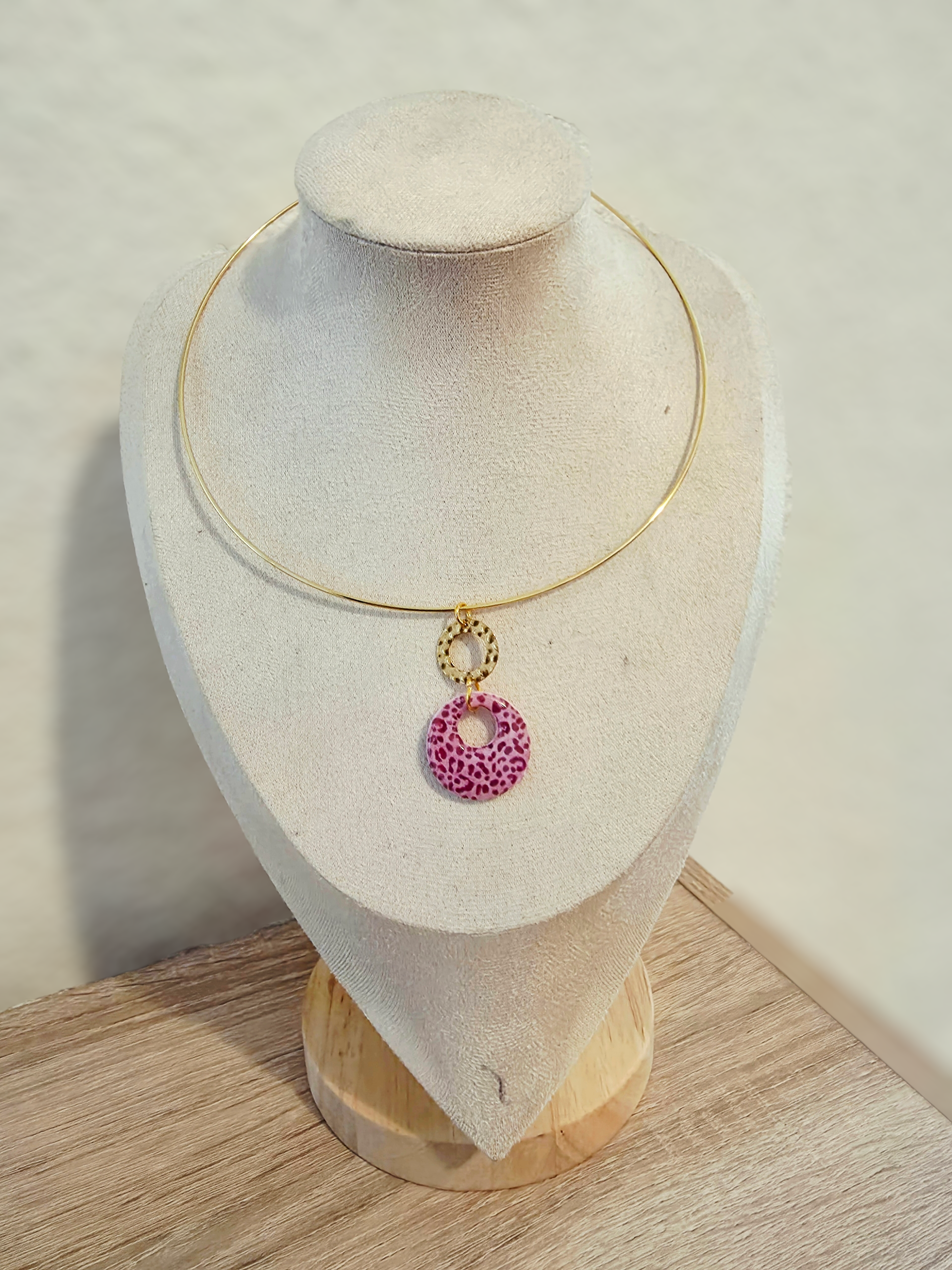 Sublimez votre port de tête avec le collier Pink Lady, une pièce de caractère qui allie la géométrie moderne à la douceur du fait-main. Ce torque rigide est conçu pour celles qui recherchent un bijou à la fois graphique, coloré et durable.