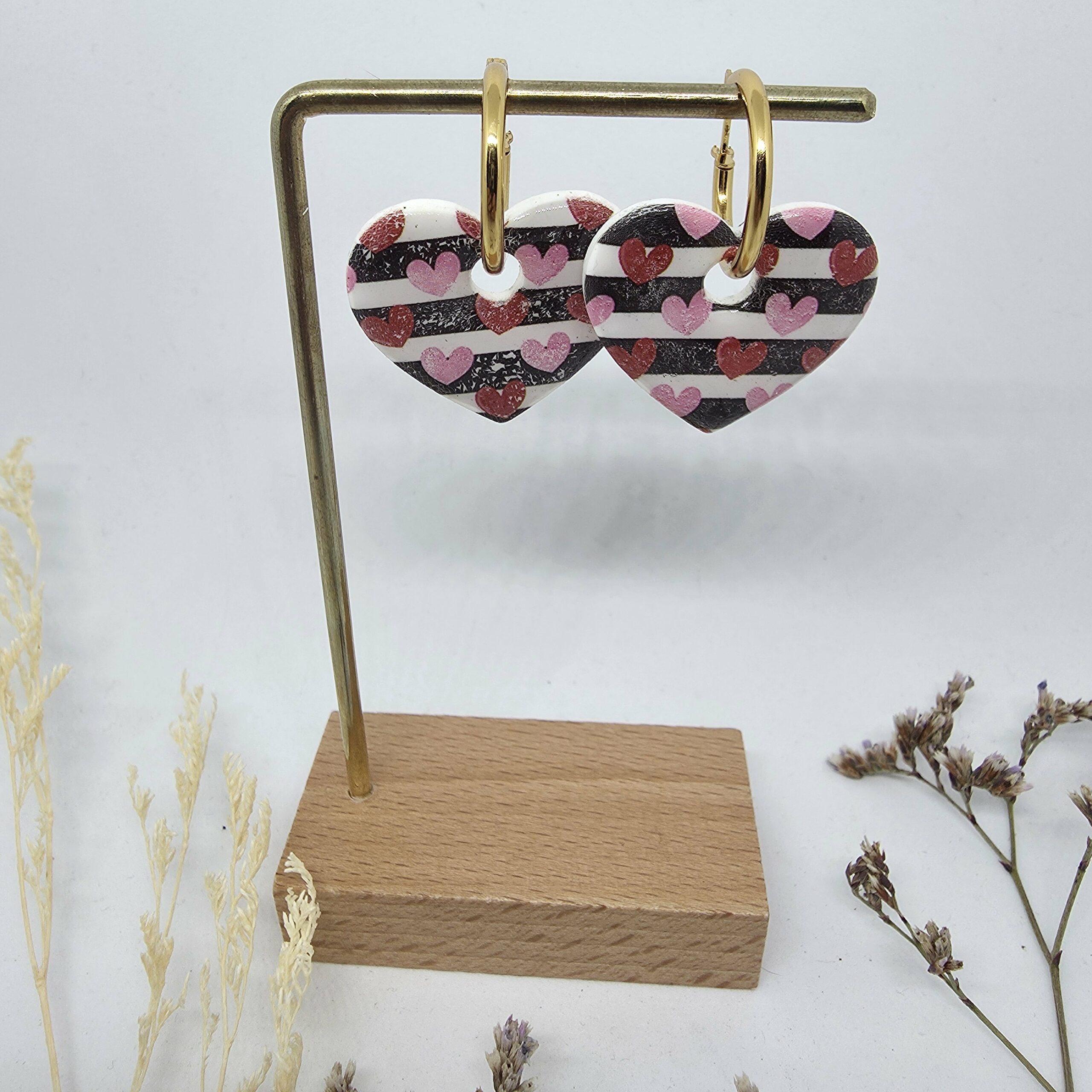 Reprenant le motif iconique de rayures et de cœurs, ces boucles d’oreilles offrent un équilibre parfait entre discrétion et style affirmé.